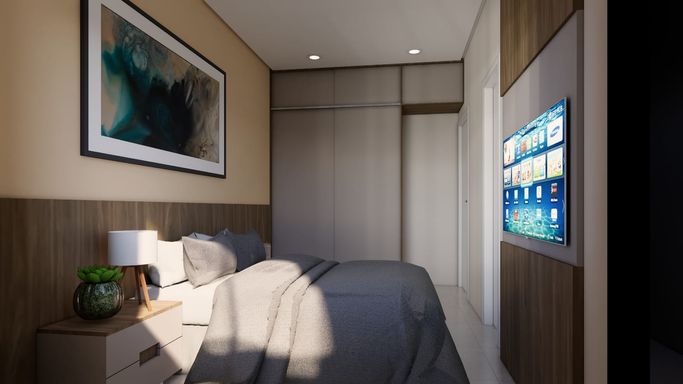 São 16 aptos com unidades de 52 a 54m2. Todos com 2 quartos e 2 banheiros, além de uma vaga privativa.